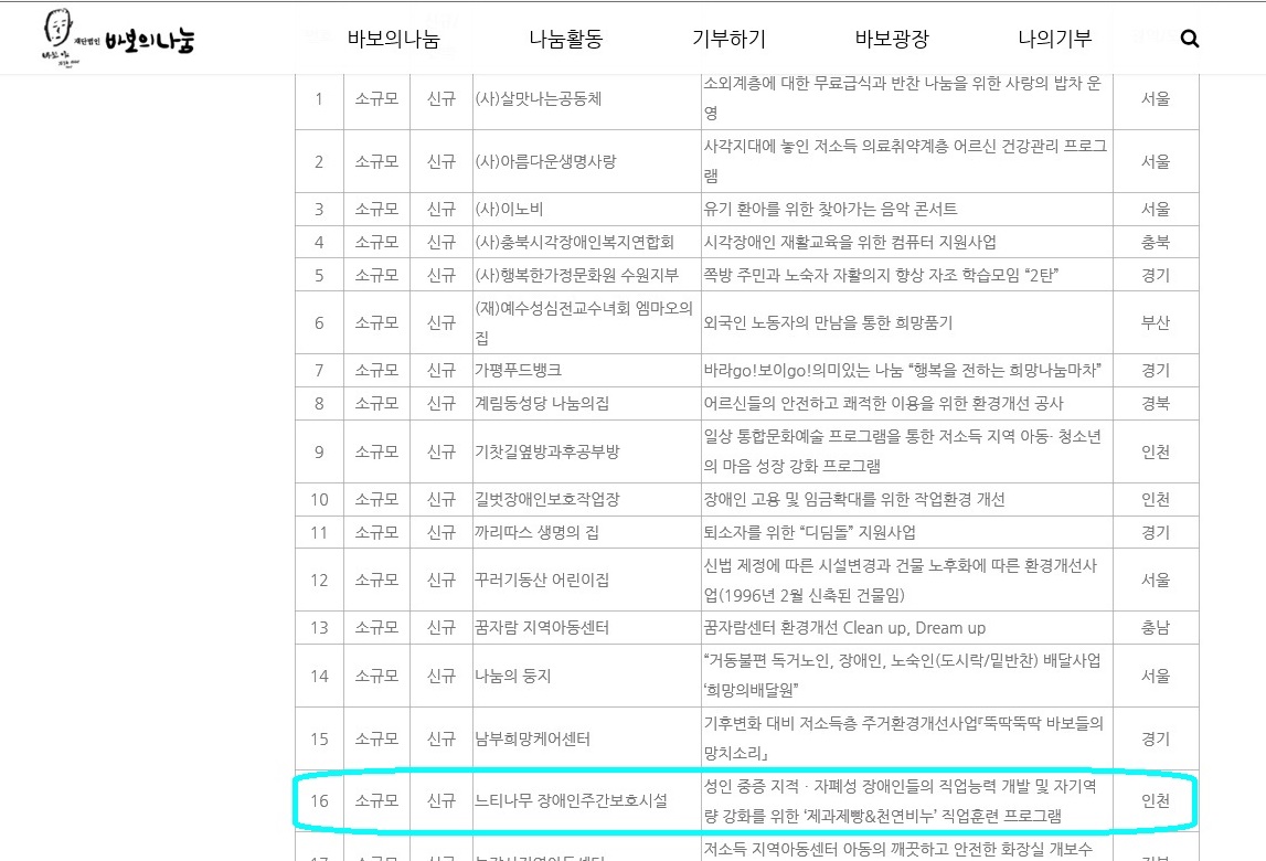 *2016년도에 이어 올해도 바보의나눔지원사업에 선정되었습니다.