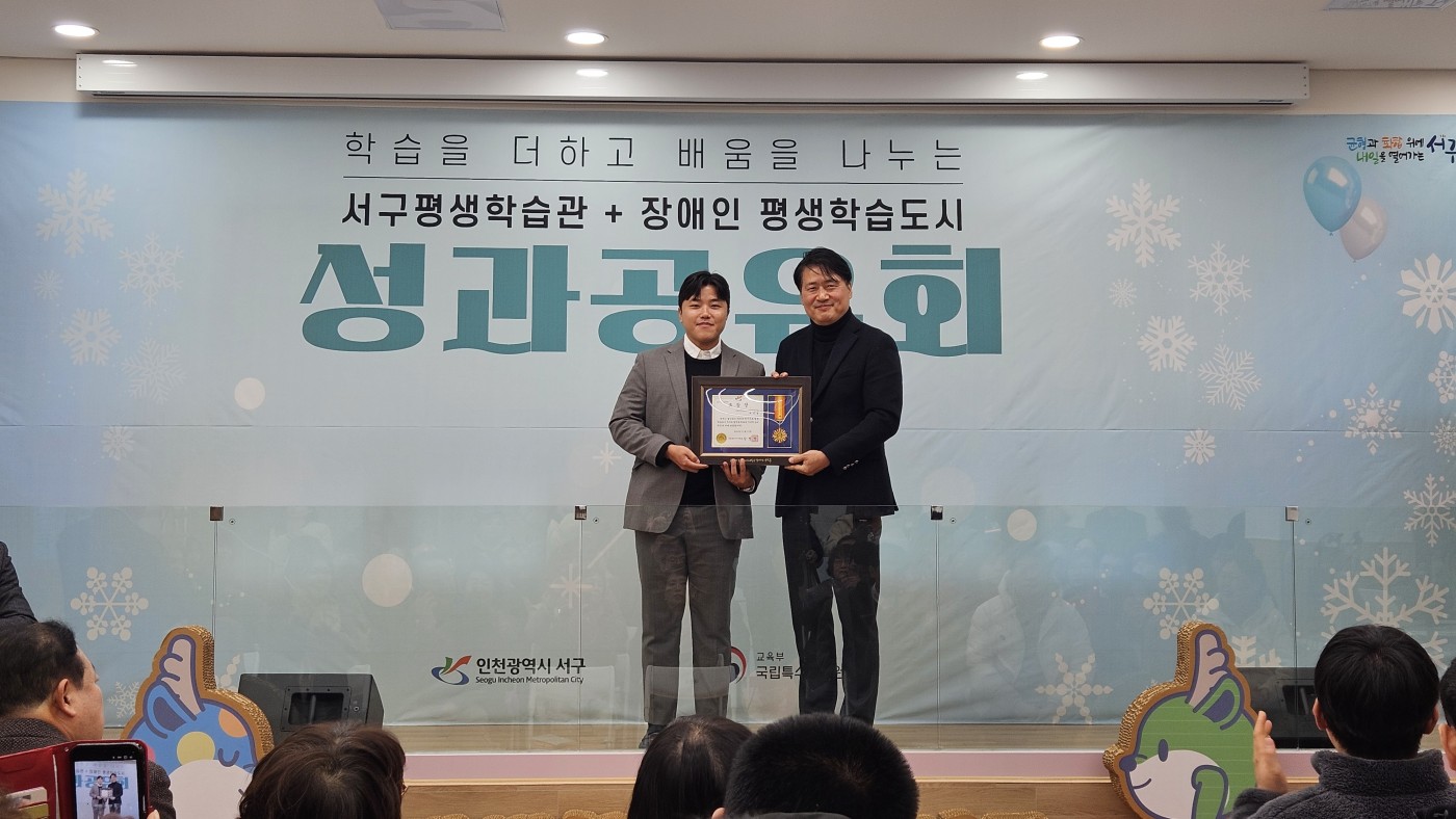2025년 11월 17일 서구평생학습관 + 장애인 평생학습도시 성과 공유회 행사시 계성현 선생님이 표창 수여를 받게 되었습니다.