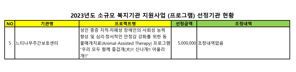 2023년도 인천공동모금회 소규모복지기관 지원사업 선정!!
