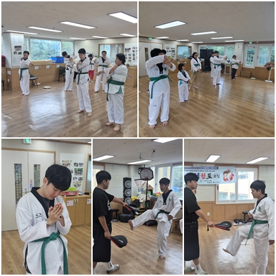 자체 수업으로 태권도 프로그램을 진행했습니다.