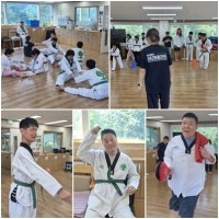 강사님의 힘찬 구령에 맞춰 품새 연습을 하였습니다. 아래막기, 몸통막기를 외치면 열심히 품새 동작을 연습하였습니다. ..