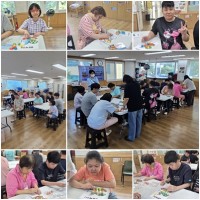 오늘은 미술활동으로 진행했습니다. 각 이용자별로 개성이 들어간 여름리스를 만들어보는 시간을 가졌습니다. 참여..