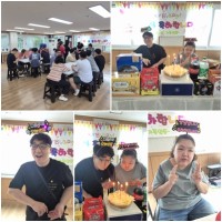 오늘 이**, 김** 이용자분의 8월 생일 파티가 있었습니다. 맛있는 케이크에 초를 켜고 느티나무 가족 모두 다 같이..