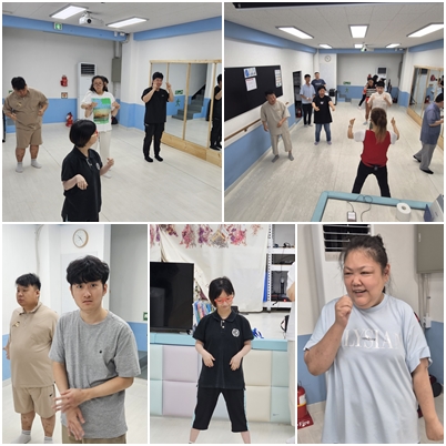 그동안 익혔던 박장웃음, 장군웃음 등 다양한 웃음 동작을 연습하는 시간을 가졌습니다. 이용자분들이 원하는 음악을 선정 후 그동한 배웠던 율동들을 강사님과 함께 신나게 해 보았습니다.