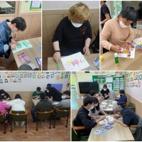 오늘 미술 및 공예활동으로 하였습니다. 이용자분들이 흰 도화지에 개성 넘치는 과일 바구니를 만…