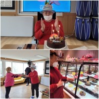 오늘 오후엔 김** 이용자의 기념일 활동(생일파티)을 하였습니다. 직접 고른 케이크에 불을 켜고 생일 축하 노래를 부..