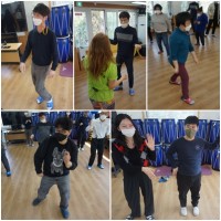 오후 수업 첫번째 시간은 웃음운동을 하였습니다. ‘샤방샤방’ , ‘독도는 우리땅’ 노래에 맞춰 춤을 추고, 한바탕 웃음..