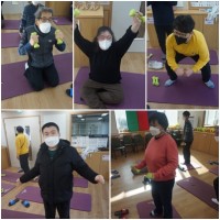 오늘의 오후수업 첫번째 시간은 뉴스포츠(비대면) 수업으로 진행하였습니다. 간단한 스트레칭과 더불어 아령을 사용..