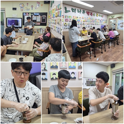 원두를 곱게 갈아 드립백에 넣고 포장까지 모두들 집중해서