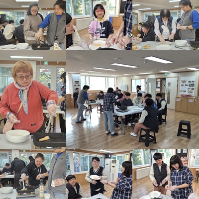 11/6 (목) 요리활동 페이지 정보 작성자 느티나무열매 댓글 댓글 0건 조회Hit 13회 작성일Date 25-11-06 16:14 본문 오늘 요리활동으로 양갱을 만들어보았습니다. 맨 처음에 두 팀으로 나눠서 진행되었으며, 각 팀에서 치즈틱을 만들어보는 시간을 가졌습니다. 모두 고생하셨습니다:) 목록 이전글11/7(금)더 튼튼 매트운동 25.11.07 다음글11/6 (목) 지역사회활동(소그룹) 25.11.06 댓글 0 댓글목록 등록된 댓글이 없습니다.