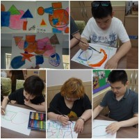 6월첫번째 미술활동으로 도형그리기를 진행하였습니다. 이용자분들이 도형(동그라미, 세모, 네모)을 …