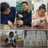 직업활동으로 이용자분들이 순서에따라 커피드립백만들기를 진행하였습니다. 절차에 따라 커피드립백을 완성하였습니다...