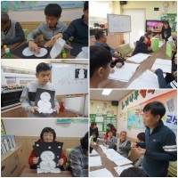 오늘의 난타수업은 '눈사람' 을 주제로 진행하였습니다. 검정도화지에 눈사람 모양을 오려 붙히고 그…