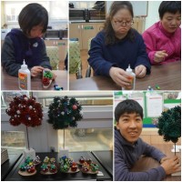 오늘의 미술 및 공예활동은 '크리스마스 트리 만들기' 로 진행하였습니다. 크리스마스 트리에 방울, 선물모양장식 ..
