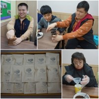 직업활동으로 이용자분들이 순서에따라 커피드립백만들기를 진행하였습니다. 절차에따라 멋진 커피드립백을 완성하였습니다. 이용..