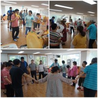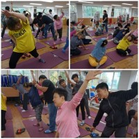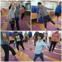 오늘은 이용자분들의 굳어진 근육을 풀어주기 위해 강사선생님과 함께 좌우기울이기, 전굴 이마기울이기 동작, 골반돌리기 동..