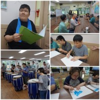 오늘은 이용자분들과 미술활동, 난타를 병행 진행하였습니다. 하얀 도화지에 파란물감을 칠하며 그리고 싶은 것을 ..