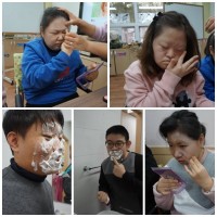 일상생활훈련으로 이용자분들이 폼클렌징으로 세면을해보고 남자분들을 면도까지 함께 진행하였습니다. 이용자분들이 세수하는방법..