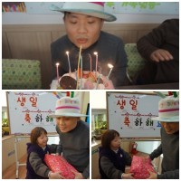 느티나무 김태영이용자의 29번째 생일을 축하하는 생일파티를 진행하였습니다. 케이크와 ,과일, 과자등 이용자분들이 즐기는 ..