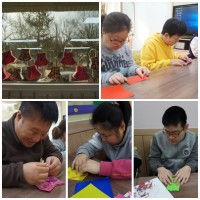설날명절을 맞이하여 색종이를 이용하여 복주머니 만들기를 진행하였습니다.이용자분들에 건강과 행복이 함께하길 바라는 복주머..