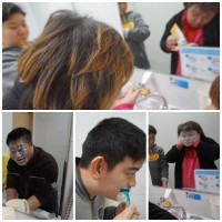 일상생활훈련으로 이용자분들이 폼클렌징으로 세면을해보고 남자분들을 면도까지 함께 진행하였습니다. 이용자분들이 세수하는방법..