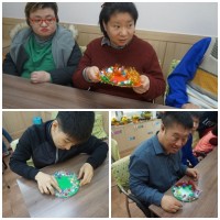 12월의 주제인 크리스마스를 주제로 미술및 공예활동 마지막시간이 진행되었습니다. 이용자분들이 원반에 솜과 꾸미..
