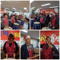 문화예술지원사업 난타활동을 22일 송년회때 공연을 보이기전에 복장을 갖추고 열심히 송년회 준비연습을 하였습니다...