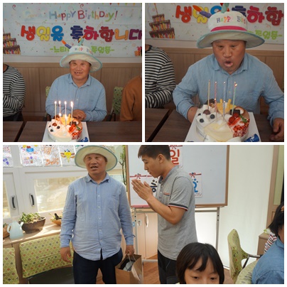 예쁜 케이크와 이용자분들이 생일파티노래를 함께부르고