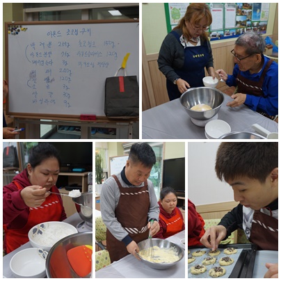 10/12 직업활동 페이지 정보 작성자 윤두수 댓글 댓글 0건 조회Hit 12,203회 작성일Date 17-10-12 18:57 본문 직업활동은 아몬드코초코칩쿠키와 숯비누/녹차 비누를 만들어 보았습니다. 조 별로 각자의 업무 분장에 따라 쿠키의 양을 재고, 반죽하고, 성형하는 등의 일련의 업무를 익혀보았습니다. 천연비누 만들기 활동은 비누베이스를 잘라 녹인 후, 분말과 오일을 섞어 몰드에 부어 비누를 성형하고 만든 비누를 직접 포장까지 진행해 보았답니다 목록 이전글10/12 계양산 무지개 숲학교 4회기 17.10.12 다음글10/11 직업활동(커피드립백만들기) 17.10.12 댓글 0 댓글목록 등록된 댓글이 없습니다.