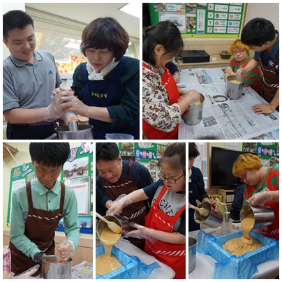 조 별로 각자의 업무 분장에 따라 쿠키의 양을 재고, 반죽하고, 성형하는 등의