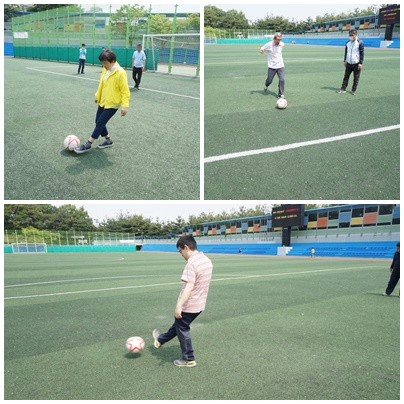 몸을 풀고 즐겁게 축구 활동에 참여하였습니다.