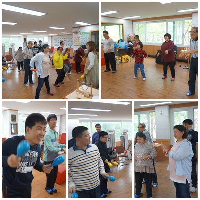 5월의 첫번째 음악활동으로 꽃송이가 음악에 맞추어 손목방울을 이용하여