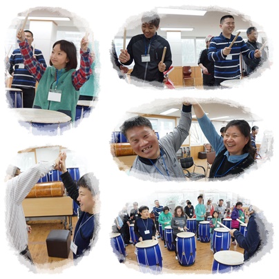 이용자분들이 강사님의 지도에 따라 리듬 익히기를