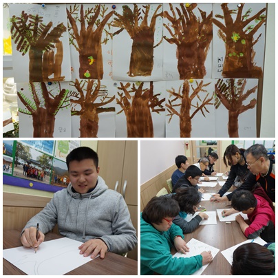 오늘의 미술 및 공예활동으로 도화지에 나무를 표현하고