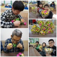 3월의 원예활동으로 사탕부케만들기를 하였습니다. 비누꽃 조화와 사탕으로 멋진 사탕부케가 만들어졌습니다. 지원..