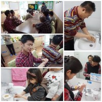 일상생활훈련으로 올바른 손씻기 방법과 로션바르기를 진행하였습니다. 화장실에서 비누칠을해서 손씻는방법을 함께 실습해보는 시..