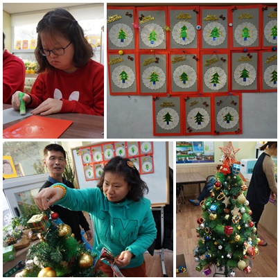 만들었습니다. 그후에 느티나무에있는 크리스마스트리에다가 장식을 예쁘게