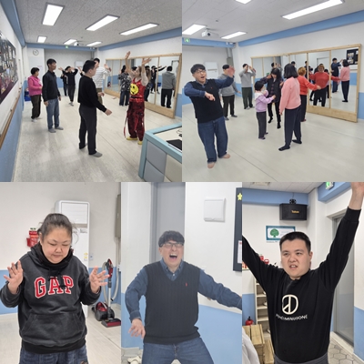그동안 배운 다양한 웃음 동작을 음악에 맞춰 함께하며 신나게 웃어보는 시간을 가졌습니다.