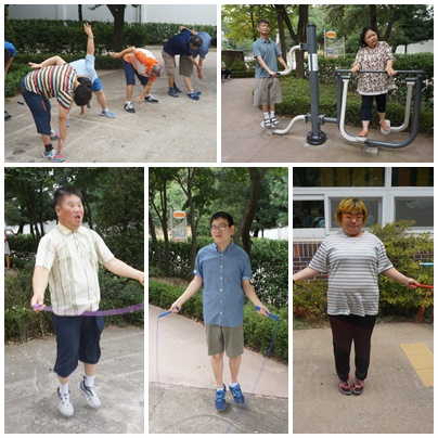 이용자분들의 스트레칭과 느티나무 외부에 있는