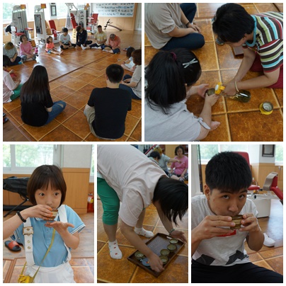 이용자분들이 하계방학때 있었던일에 대하여 담소를 나누며 맛있는차와 함께 하였습니다.