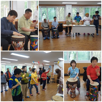 젬베, 북, 리듬스틱 등을 가지고 노래에 맞추어 즐거운