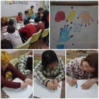 오늘의 미술활동은 가위,바위,보 형태그리기 였습니다. 이용자분들이 자신의 손으로 가위보를 표현하구 연필로 유도해서 그리..