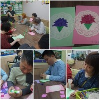 어버이날을 맞이하여 카네이션 감사장 만들기를 하였습니다. 색도화지에 도일립 페이퍼 위에 색종이를겹쳐서 오려붙이고 이용..