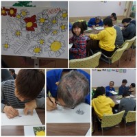 오늘 미술활동은 민들레꽃 그리기 입니다. 4월의 봄꽃처럼 민들레 꽃 생화를보구 이용자분들이 스케치하고 색연필로..