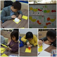 병아리 가족꾸미기 도화지와 색종이, 풀,연필,지우개,색연필을 이용하여 종이컵과 국그릇을 이용하여 원을 그려 몸통을 나타..