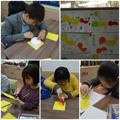 도화지에 색칠도 하고 병아리 가족을 이쁘게 표현하는 시간이었습니다.