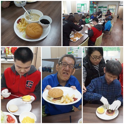 고기패티를 전날에 김숙연선생님과 주방 자활선생님이 소고기와 돼지고기로 다진것을