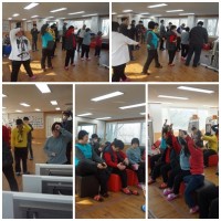 원예활동이 끝난후에 이용자분들과 주말에 피로했던몸을 풀기위하여 스트레칭 활동을 하였습니다. 이용자분들이 열심히 동작을..