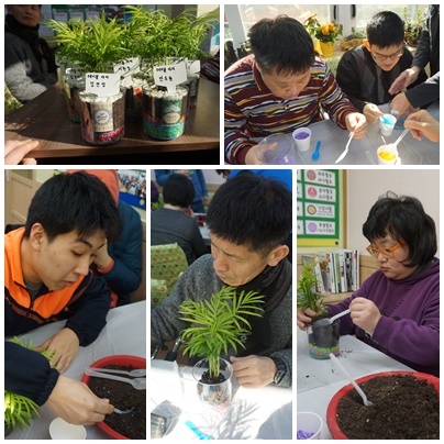 2월 첫번째 원예활동으로 테이블 야자수 식물심기를 하였습니다.