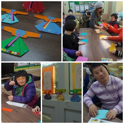 색종이종이접기로 이쁜 한복을 만들었습니다. 비즈 와스팽글등을